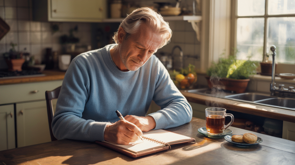 Simple mood tracking doesn’t require a psychology degree. Rate your overall mood from 1-5, note any significant stressors, or just jot down one word describing how you felt emotionally that day. The goal is noticing trends, not perfect documentation.